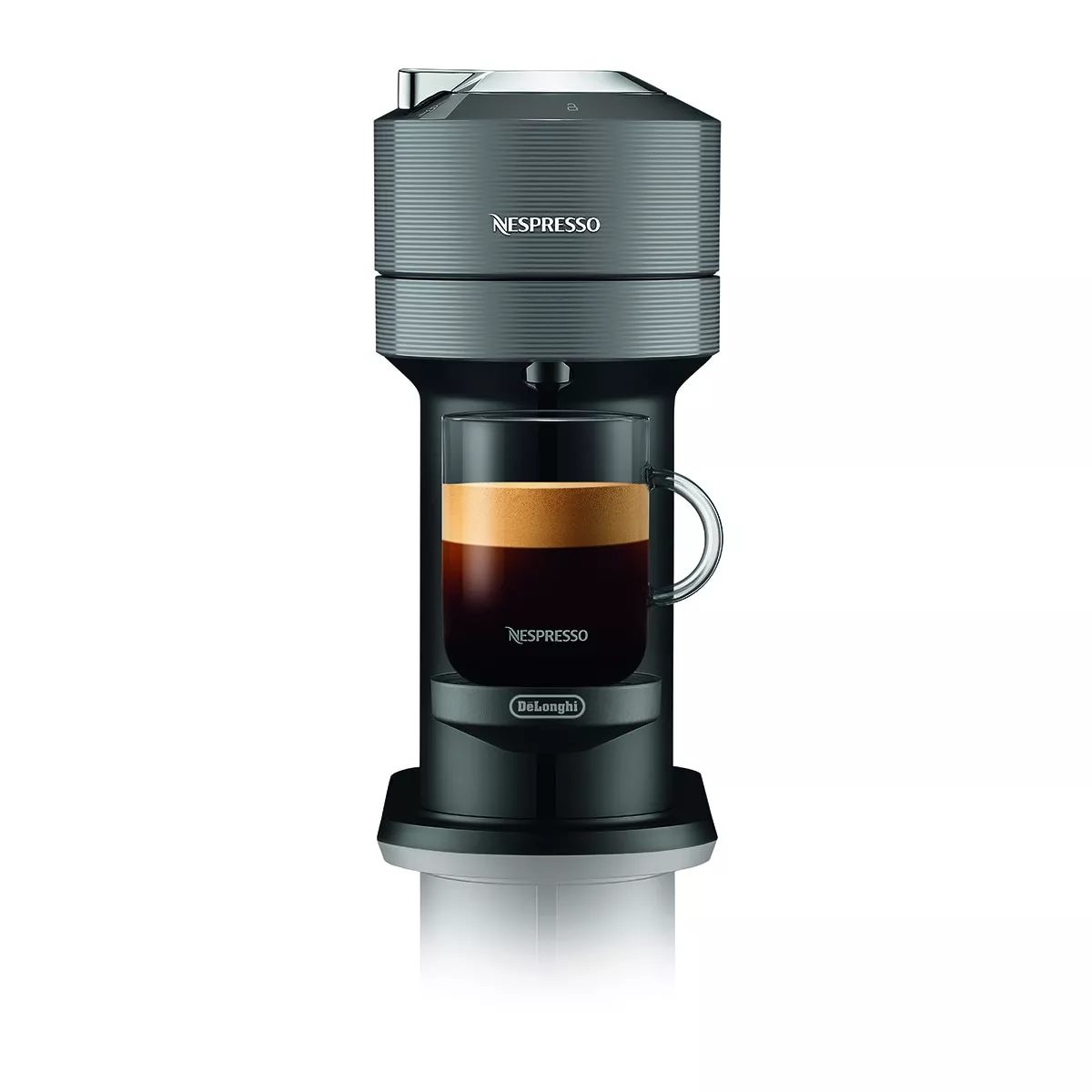 De'Longhi Cafetera de cápsulas De'Longhi Vertuo Next para cápsulas Nespresso con Centrifusion Gris DescripciónNueva tecnología de extracción patentada:CENTRIFUSION. Con esta nueva tecnología de preparación, la cápsula gira hasta 7.000 rotaciones por minuto, mezclando café molido con agua.La máquina ofrece los resultados óptimos en taza para cada mezcla mediante la preparación de cápsulas específicas con la tecnología de lectura de códigos de barras.Las cápsulas VertuoLine vienen en 3 tamaños (pequeño, mediano y grande) que se adaptan a los 3 tamaños de taza disponibles: Espresso , Café y Alto.Para un futuro más sostenible, el nuevo Vertuo Next está fabricado de un 54% de plásticos reciclados.5 medidas de tazas: Espresso (40 ml), Doble Espresso(80 ml.), Gran Lungo (150 ml), Mug (230 ml) y Alto (414 ml).Conectividad para actualizar el software.