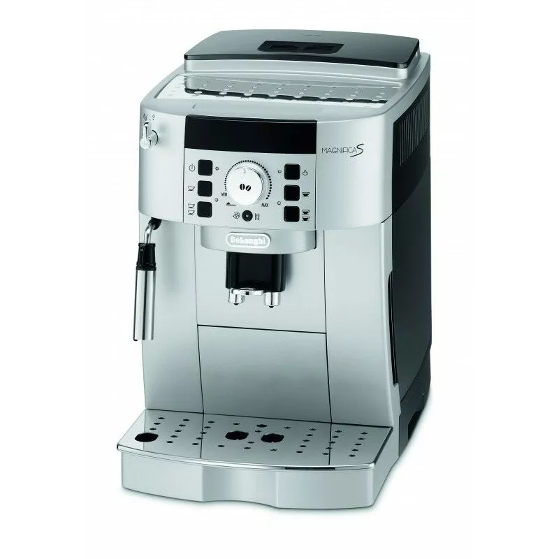 De'Longhi Cafetera Superautomática De'Longhi Magnifica S ECAM22.110.SB con sistema Twin-Shot DescripciónAtractiva cafetera automática que le dará un toque elegante y refinado a tu cocina. Bebidas a base de café con solo tocar un botónEl sistema Twin-Shot prepara dos tazas de espresso a la vezCremosa espuma de leche con el vaporizador de leche manual ajustablePersonaliza el aroma y la cantidadCuerpo negro brillante con elegante acabado plateado y botones de tacto suave con pantalla digital