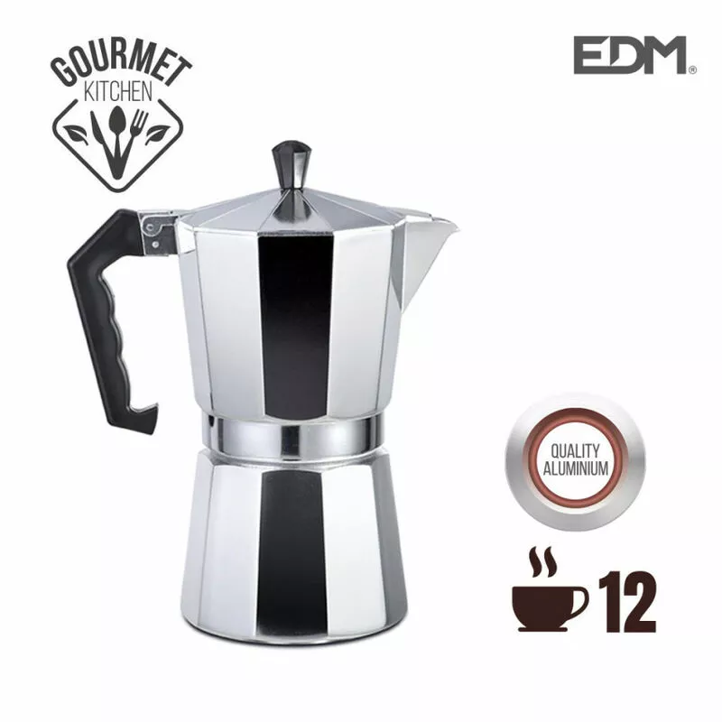 Cafetera De Aluminio - 12 Tazas - Apta Para Gas, Vitroceramica Y Placa Electrica - Fabricada Segun Normativa Ue De Productos En Contacto Directo Con Los Alimentos - Edm