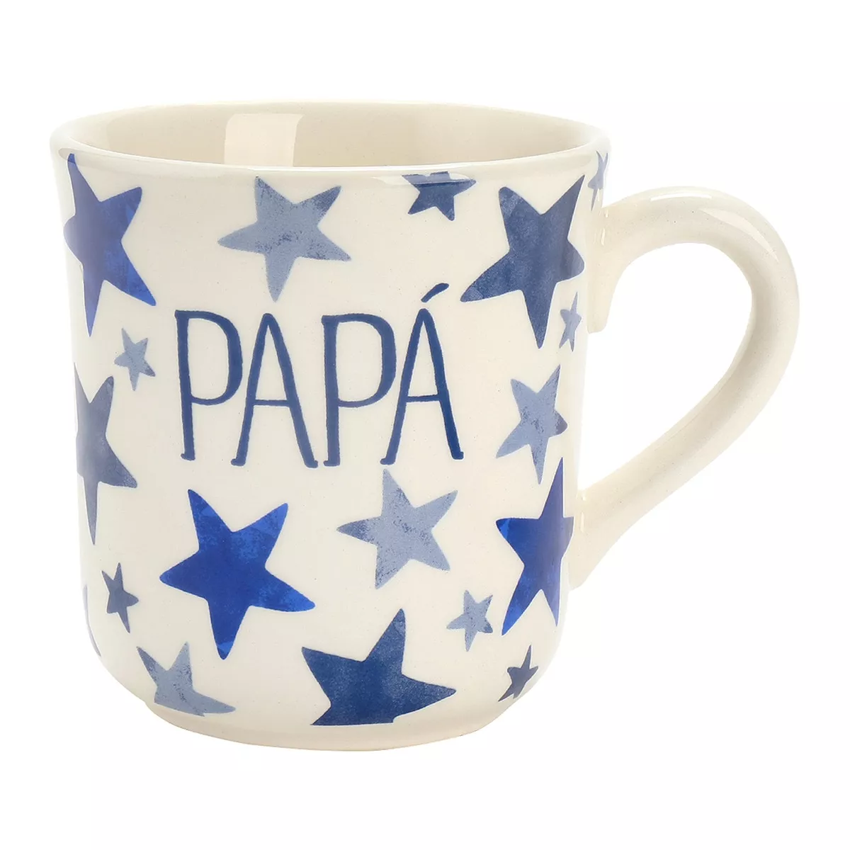 El Corte Inglés Taza mug papá Textos El Corte Inglés DescripciónTaza estilo mug decorada con estrellas en tonos azules y la palabra papá en grande. Está realizada en loza y es perfecta para que todos los padres disfruten de su bebida favorita en cualquier momento del día.
