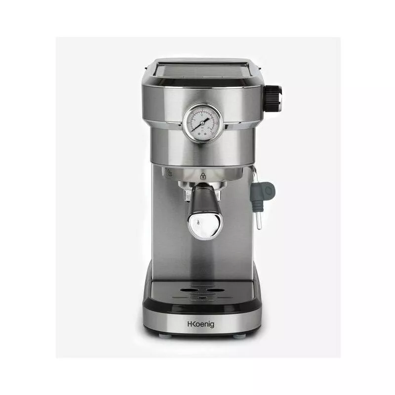 Cafetera Espresso H Koenig 1350 W ¡Disfruta de cafés inolvidables en familia o entre amigos con la cafetera expresso italiana EXP820 de H.Koenig! La cafetera expresso es tu aliada perfecta para cada desayuno, sobremesa y merienda. Prepara cafés rápido y fácil obteniendo resultados de cafetería. Caracterizada de una gran potencia de 1350 W, la máquina de café expresso italiana tiene una bomba de presión de 15 bares y un barómetro incluido. Preparar verdaderos cafés expresso italianos con sabores y aromas excepcionales. Dispone de una cuchara medidora y de dos filtros, individual y doble, para preparar cafés al gusto de cada uno. Después de utilizarlo, podrás lavarlos en el lavavajillas. Tiene un diseño moderno y sofisticado y un tamaño de 33.2 x 16.3 x 30.2 cm (L*P*H), perfecto para colocarla en cualquier esquina de la cocina o en la oficina. Características: Presión de la bomba: 15 bares Capacidad del depósito de agua: 1,1 L Bomba de fabricación italiana con barómetro integrado