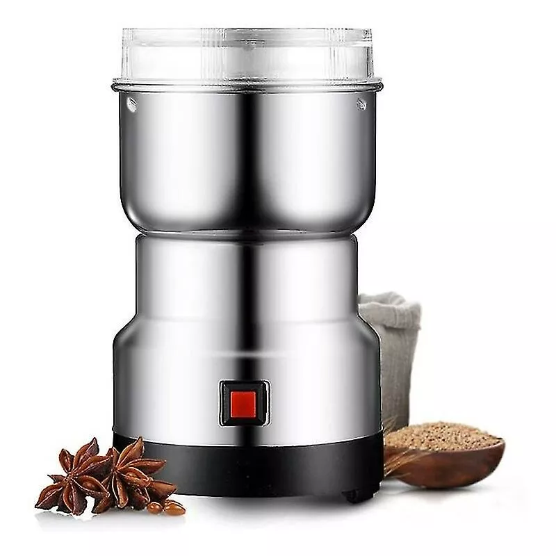 Producto: Molinillo de café Color: plateado Material: Acero inoxidable Tensión: 220V/110V Tamaño: 11*11*18cm Tipo de enchufe: Enchufe europeo/enchufe británico, opcional Nota: Lo mejor es moler 200-250 g cada vez Este es un molinillo eléctrico casero hecho de acero inoxidable duradero con una bonita cubierta transparente para facilitar la limpieza Molinillo multiusos saborizante de granos , el mejor asistente de vida para hacer tú mismo tu café favorito u otra comida Diseño único y estilo clásico Agrega entretenimiento a tu vida Seguro y conveniente, ahorra más tiempo
