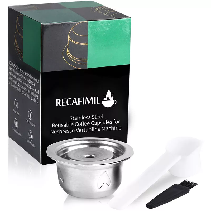 Cápsula de café de acero inoxidable 304, llénela en 12,5 g de café en polvo, luego 150 ml de crema rica y café de sabor suave está listo. Reutilizable, duradero y respetuoso con el medio ambiente. Especificaciones: Color: Plata Material: Acero Inoxidable Tipo: Tipo A/ Tipo B/ Tipo C/ Tipo D (Opcional) Cafetera Compatible: NESPRESSO Vertuoline GCA1, Delonghi ENV135, Delonghi ENV150, VertuoPlus BNV450WHT1BUC1 Capacidad de la cápsula: 12,5 g Peso del artículo: 62 g / 2,19 oz Tamaño del paquete: 11,0 * 7,5 * 7,5 cm / 4,33 * 2.95 * 2.95in Lista de paquetes: 1 * Cápsula de café 1 * cuchara 1 * cepillo