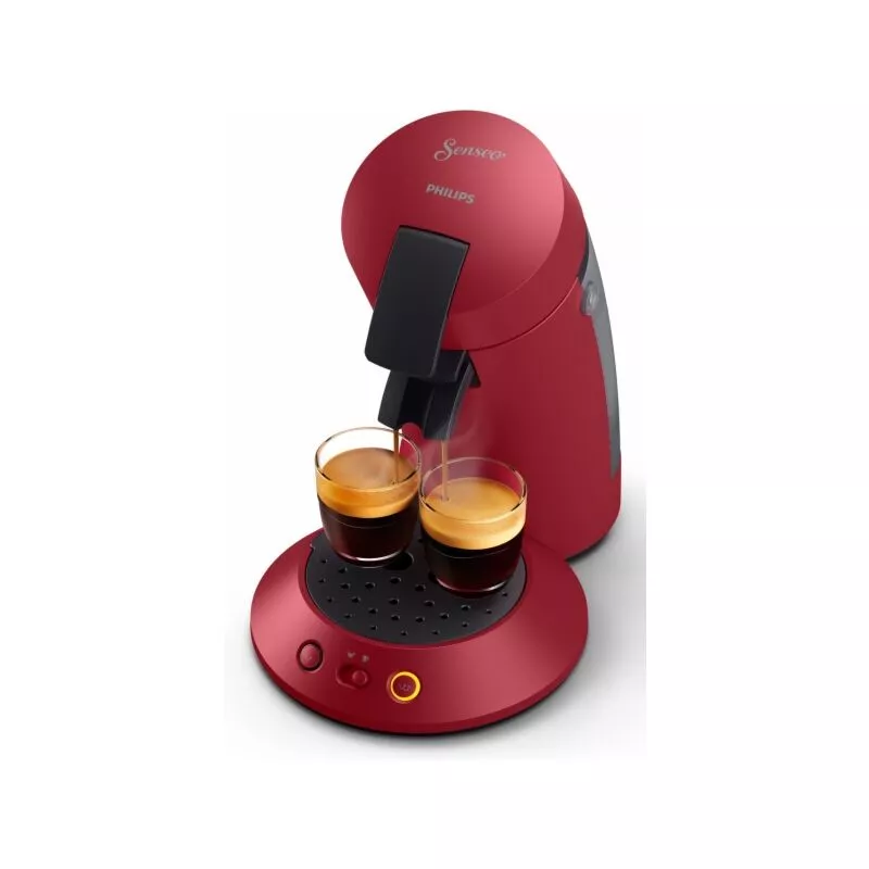 Csa210/91 Senseo original plus Cafetera de monodosis Selecci�n de intensidad Tecnolog�a coffee boost Bajo consumo Rojo oscuro Especificaciones Accesorios Incluido: soporte para dosis de 1 taza, soporte para dosis de 2 tazas Dise�o Color: rojo oscuro Especificaciones generales Tazas al mismo tiempo: 2 Piezas aptas para el lavavajillas: tapa de la b