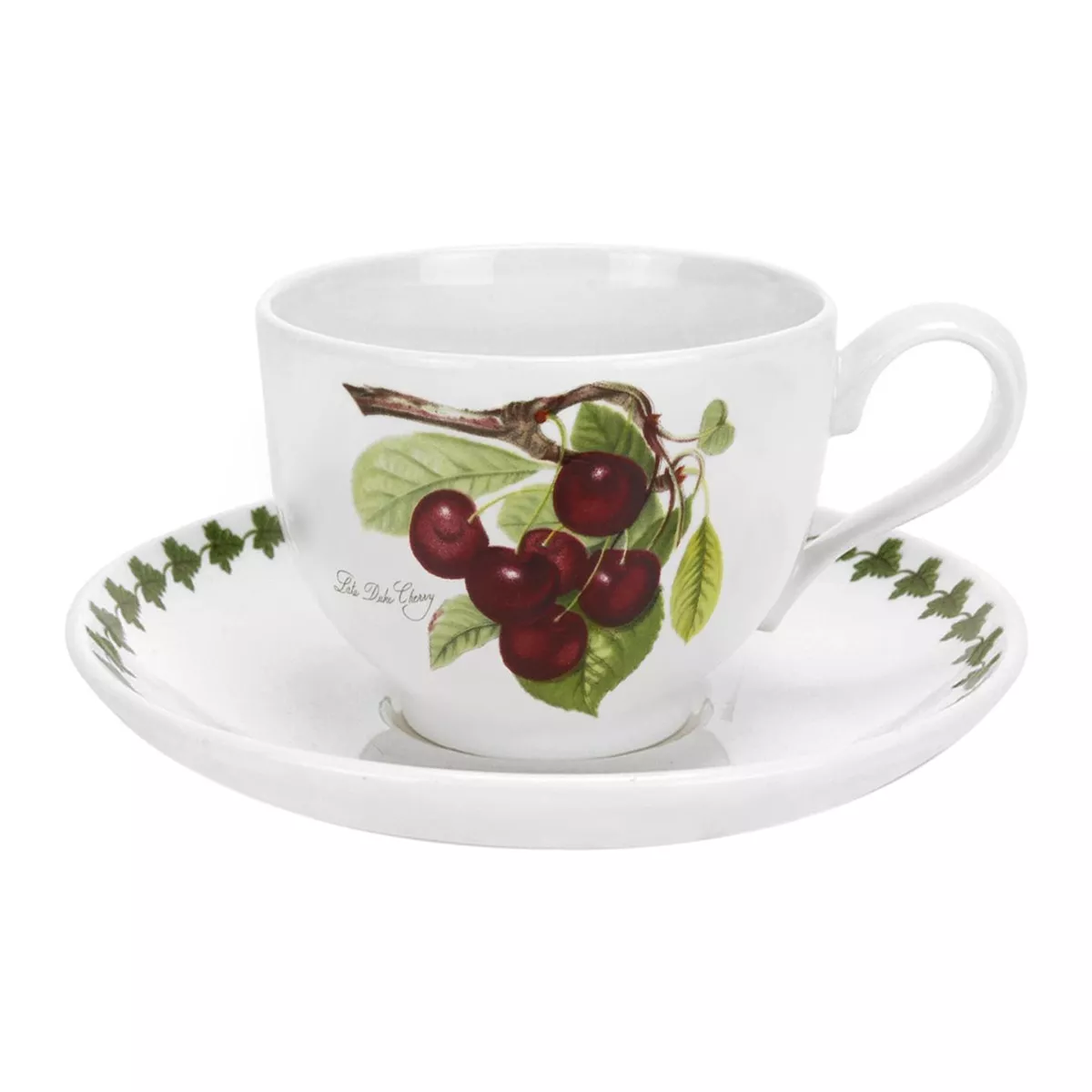 Portmeirion Taza de té con plato Pomona Cereza Portmeirion DescripciónJuego formado por una taza de té y un plato de líneas clásicas y atemporales, realizados en loza y decorados con un colorido dibujo de unas cerezas silvestres.Pertenece a la colección Pomona de la firma inglesa Portmeirion, creada en 1982, que recibe su nombre de la diosa romana de la fruta y que destaca por el dibujo de abundantes y llamativos motivos frutales sobre fondo blanco.Combínalo con el resto de piezas de la misma serie y crea un bonito conjunto para vestir tu mesa con estilo y añadir un toque romántico.