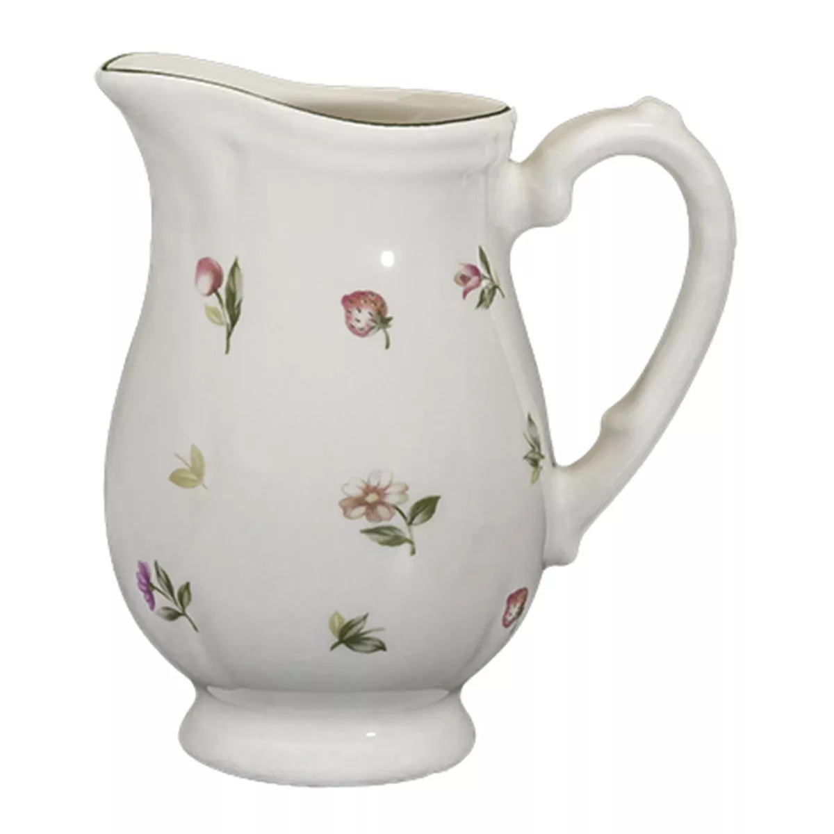 San Claudio Lechera Grana New San Claudio DescripciónCon un patrón de deliciosas flores y frutas con borde decorado, esta lechera irradia encanto y estilo. Su toque romántico y vintage, lo convierte en una pieza que no pasa de moda.Realizada en loza, es resistente y apto para el lavavajillas y microondas.
