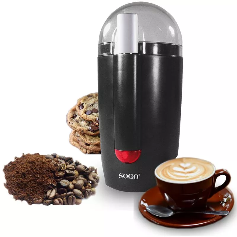 Molinillo de Café eléctrico de alta potencia. Permite moler café, especias, ¡y una gran variedad de condimentos! Motor de alta potencia, de construcción robusta para que dure años. Cuerpo, interior y hojas afiladas, realizadas en acero inoxidable. Recoge-cable incorporado. Botón pulsador para una máxima flexibilidad. Ofrece un avanzado sistema de seguridad ya que el motor sólo entra en funcionamiento con la tapa situada en su lugar. Diseño moderno y elegante, ¡da gusto tenerlo presente, y da ganas de utilizarlo! Capacidad: 36 g. AC 220-240V – 50/60Hz – 150W.
