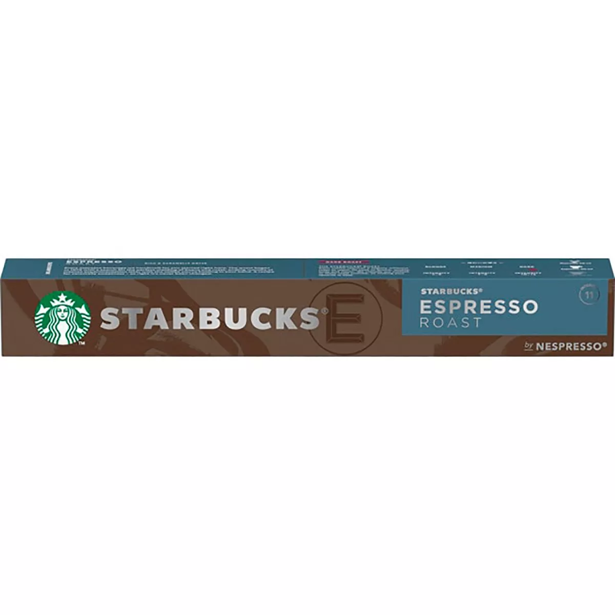 Starbucks Estuche 10 cápsulas STARBUCKS Espresso café espresso intensidad 11 compatibles con máquinas Nespresso DescripciónDenominación del alimento: Café molido de tueste naturalNombre del operador: Nestlé España, S.A.Dirección del operador: Nestlé España S.A. C/Clara Campoamor, nº2. 08950- Esplugues de Llobregat (Barcelona)Cantidad Neta: 57 gIngredientes y alérgenos: CaféConservar en un lugar limpio, fresco y seco.Modo de empleo: Colocar la cápsula de Espresso Roast en la máquina NESPRESSO y marcar la cantidad de rallas equivalente a lo que desees (Ristretto-25ml, Espresso-40ml)